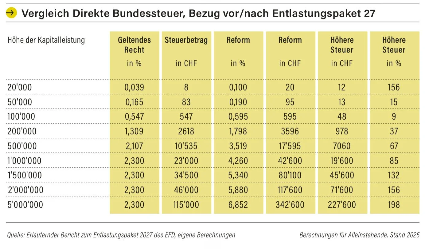 Mögliche Auswirkungen des Entlastungspaketes 2027 auf Basis der Direkten Bundessteuer: